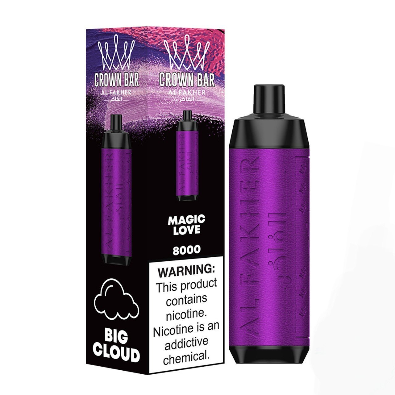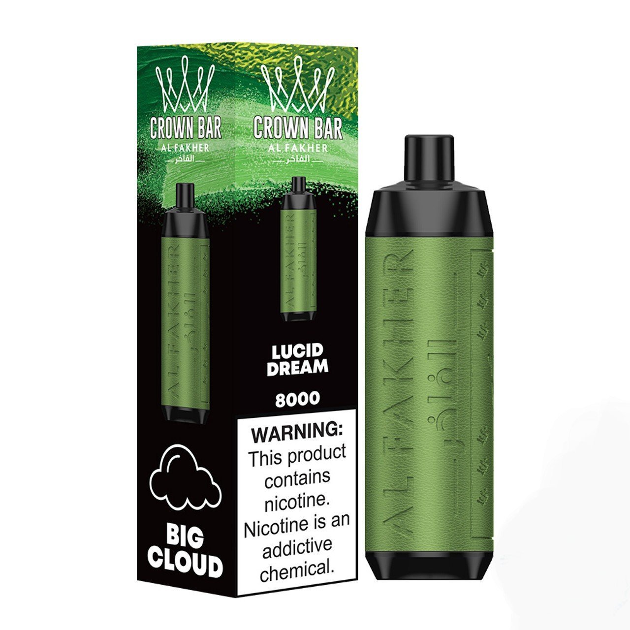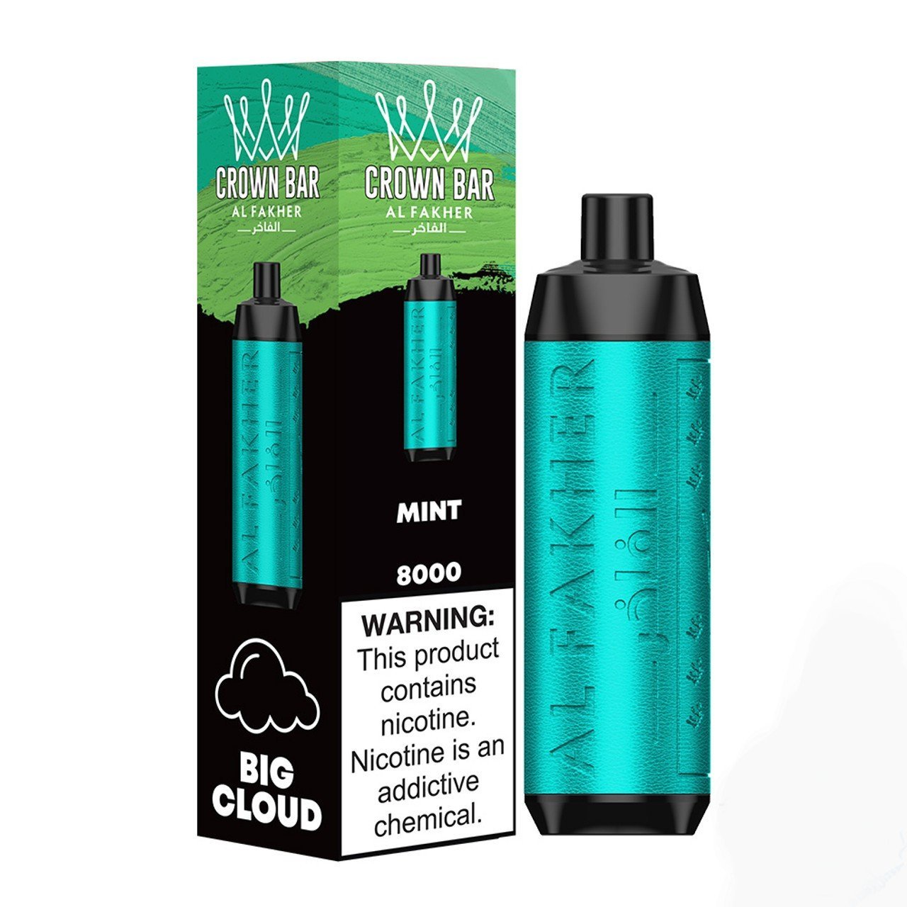 Al Fakher Crown Bar 18ML Big Cloud 8000 Puffs 600mAh Prefilled Nicotine Salt Rechargeable Disposable Vape Device With Mesh Coil – Display of 10