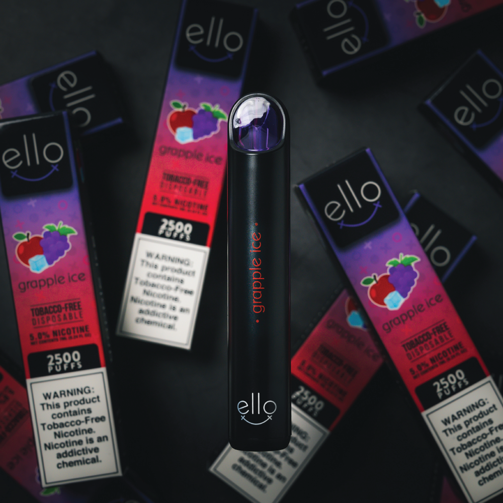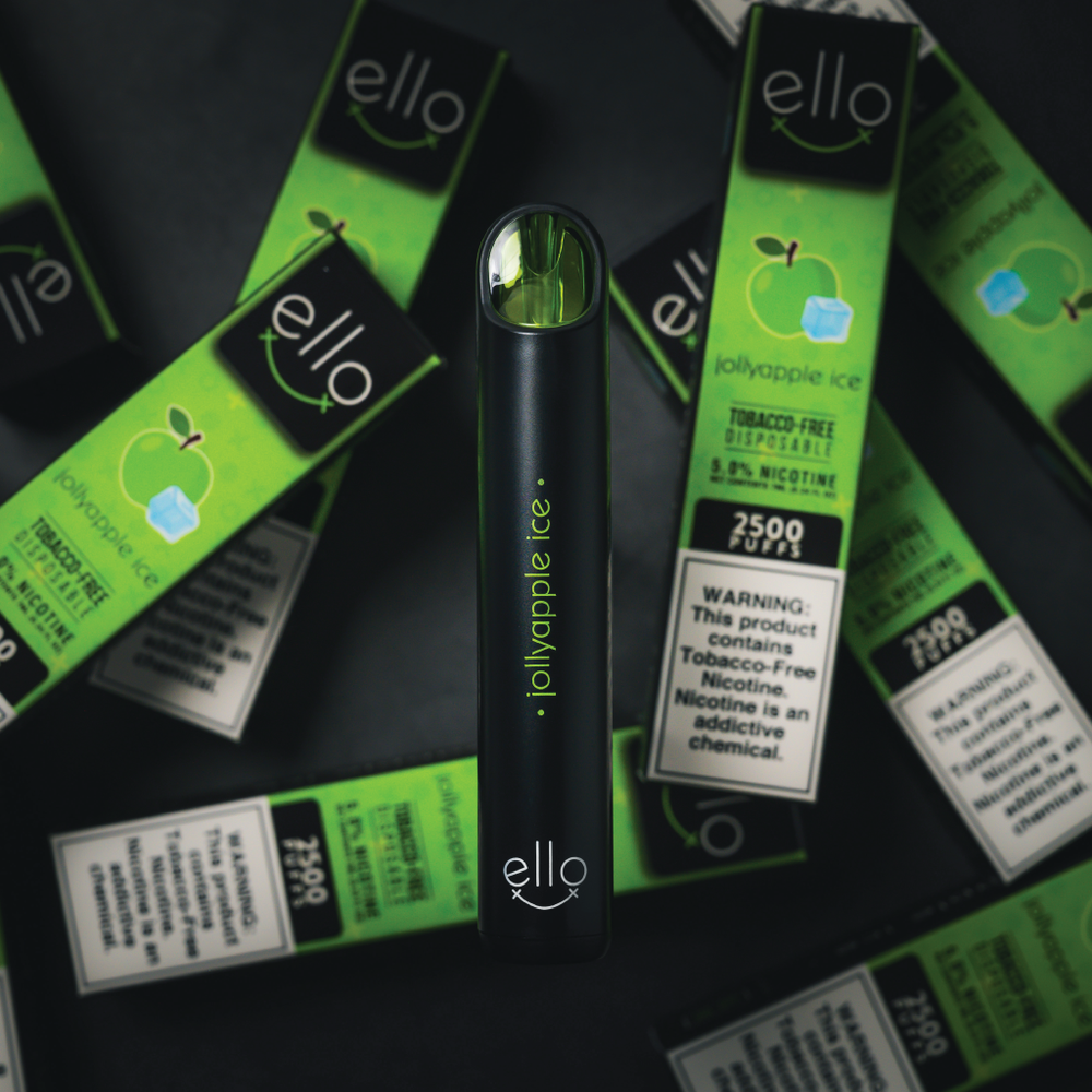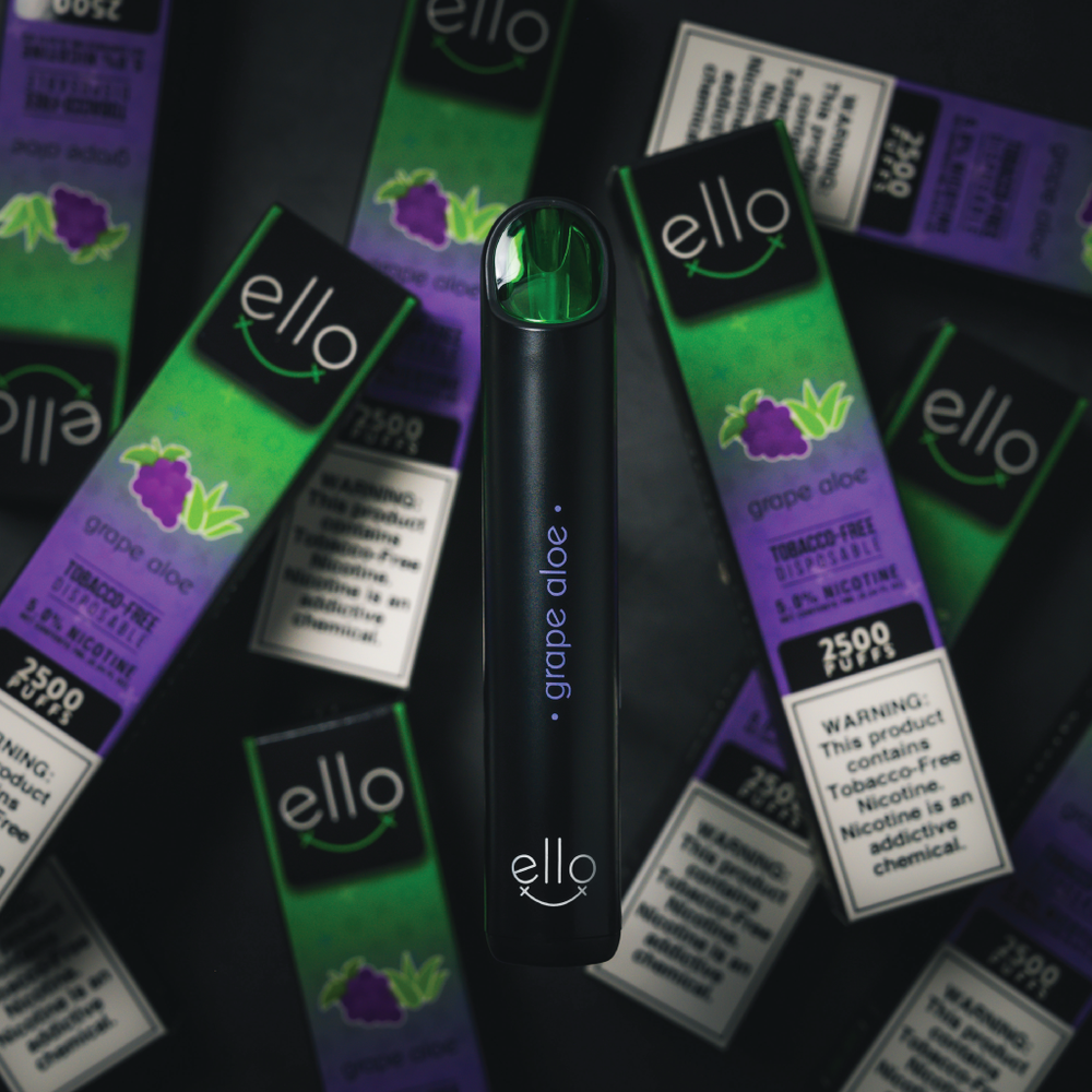 BLVK ELLO Disposable Vape, featuring 7mL eJuice capacity, 5% synthetic nicotine formulation, and delivers approximately 2500 puff.