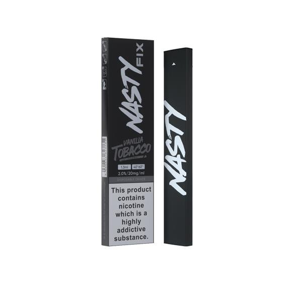 NASTY Disposable Pod device which is developed to ensure everyone can enjoy the same Nasty Juice flavours in the easiest way. Nasty Fix provides the user with a straight-forward, no-hassle experience. Flavours coming Asap Grape, Blackcurrant Cotton Candy, Cushman, Pure Tobacco, Slow Blow, Vanilla Tobacco, Watermelon Ice