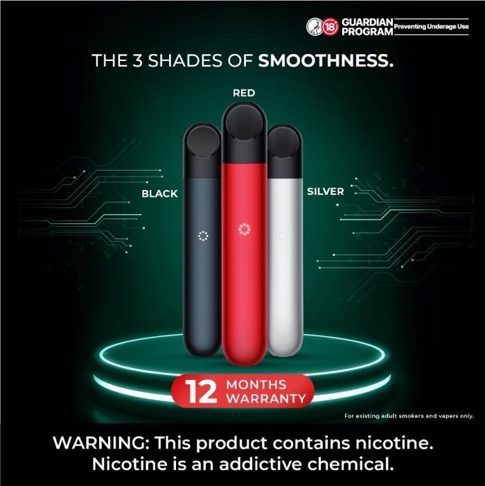 Battery: Built-in 350mAh, Color: Black, Silver, Red, Pod capacity: 1.9 ml Pod, Warranty: 12 Months. Include 1x Device, 1x USB C Charger.