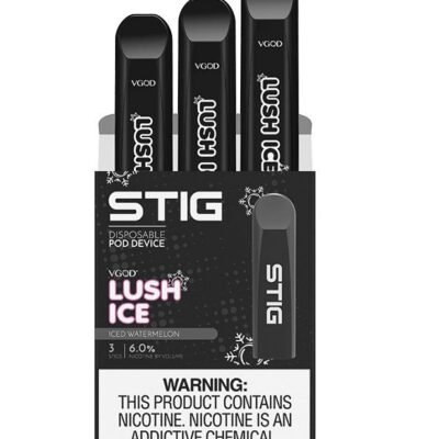 Lush Ice – Lush Ice by VGOD is a delicious burst of fresh watermelon on the inhale with sweet undertones of mixed melons and menthol on the exhale, providing a smooth and fruity all-day vaping experience. Each Stig comes with 1.2ml of Salt Nicotine E-Liquid. Comes in a pack of three 3. STIG Lush Ice Dubai