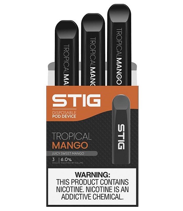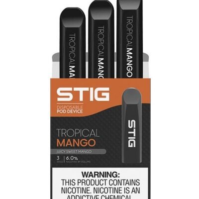 Tropical Mango – Tropical Mango by SaltNic brings along a sweet mango with a hint of zing in every puff, providing a refreshing fruity flavor to satisfy your palate all day! Each Stig comes with 1.2ml of Salt Nicotine E-Liquid. Comes in a pack of three 3.